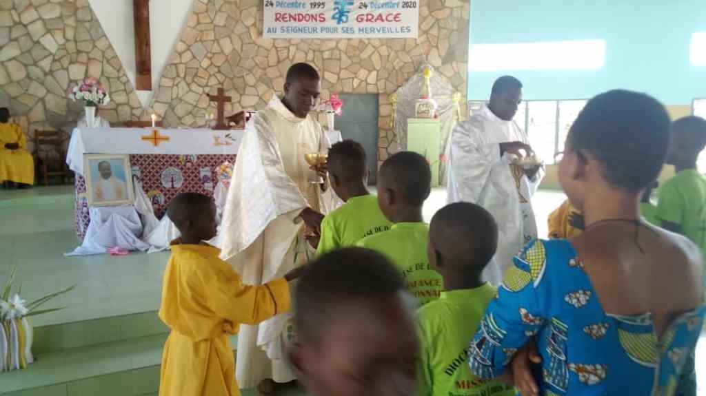 La commission diocésaine était hier à Gaounga, fille aînée du diocèse pour, pour la Messe de clôture des journées paroissiales de l’Enfance Missionnaire. Le Directeur Diocésain des OPM (Père Roméo A. ) a présidé cette Eucharistie, l’aumônier de l’Enfance Missionnaire a fait l’envoi en mission.
