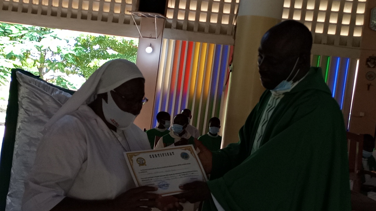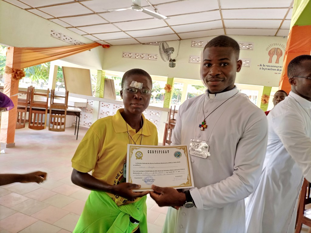 Suite à l’homélie et après que le directeur national aidé par les prêtres présents leur a porté les croix, ils ont reçu leur certificat de formation et la bénédiction de l’envoi en mission.