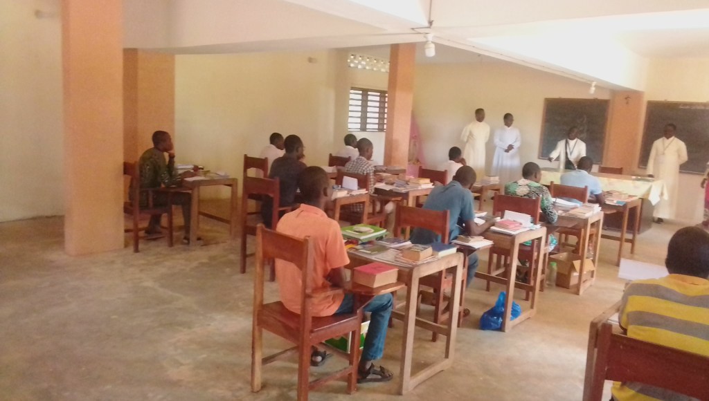 La direction nationale des Œuvres Pontificales Missionnaires au Bénin a rendu une visite de courtoisie au corps professoral et aux séminaristes du jeune séminaire diocésain de l’archidiocèse de Cotonou situé à Kpanroun. Des échanges fructueux ont eu lieu entre le nouveau Recteur, Révérend Père Augustin GNONHOSSOU accompagné des autres prêtres de la maison et la délégation de la direction nationale des OPM BÉNIN. Si le nouveau séminaire ne compte que de quatorze séminaristes, ils sont quand même bien encadrés par cinq prêtres formateurs et un stagiaire canonique. Au terme de cette visite, il a été conclu une séance d’animations missionnaires qui aura lieu dans les jours à venir.