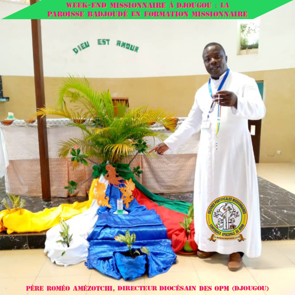 Du vendredi 12 au samedi 13 novembre 2021, la paroisse de Badjoudé du diocèse de Djougou a choisi vivre de façon extraordinaire la mission. Baptisés « Weekend Missionnaire », ces deux jours seront vécus avec pour objectif de former les couches suivantes : les catéchistes, les vices présidents, les aspirants et aspirantes, les enfants missionnaires, les accompagnateurs des enfants. Et voici les thèmes qui leur seront développés: « Identité et la mission du catéchiste », « la question de l’auto prise en charge », « ma vocation : don et mystère », « Identité et mission de l’enfant missionnaire », et « Identité et mission de l’accompagnateur des enfants ».