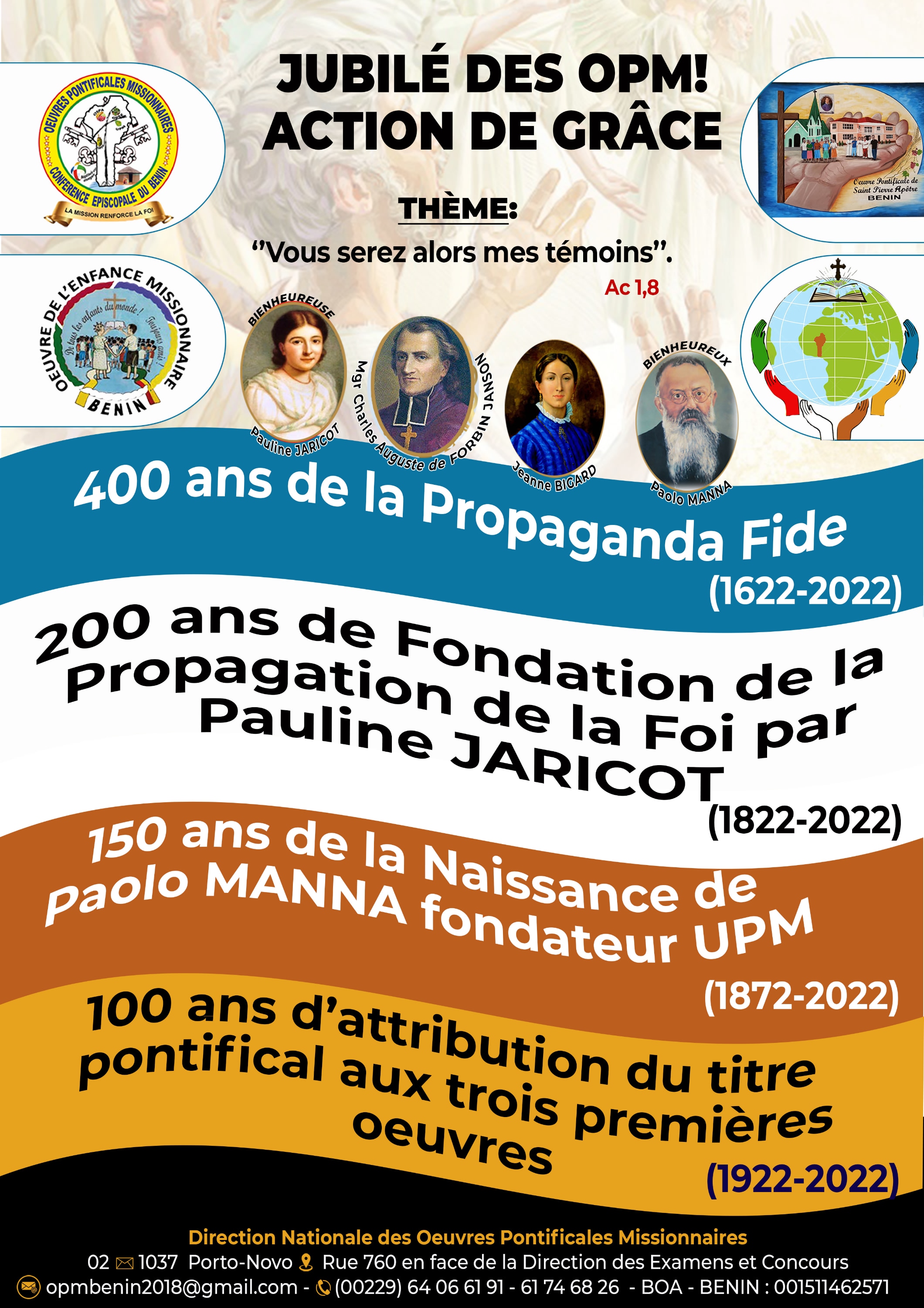 L’église catholique célèbre chaque année une journée mondiale missionnaire. En 2022, cette ‘’Journée missionnaire mondiale » a été fixée au 23 octobre. Le thème retenu est « Vous serez alors mes témoins» (Actes 1, 8).