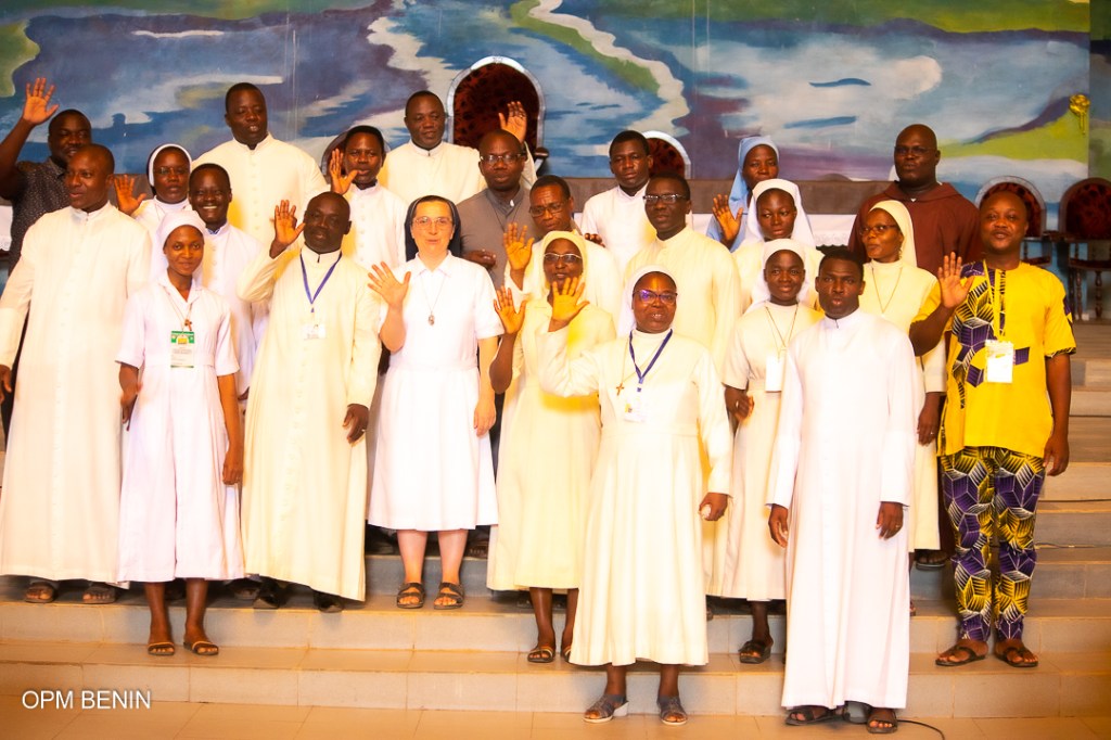 Avec Jésus et sa sainte Mère, soyons tous missionnaires!!! Action de grâce au Seigneur pour ses bienfaits. En trois jours (24,25,26 février 2023) nous avions tenu notre pèlerinage national de l’Enfance Missionnaire : trois jours d’ambiance bon enfant, trois jours de prière, trois jours d’enseignements, trois jours d’enrichissement mutuel entre les enfants des dix diocèses de notre pays. Un sincère et filial merci à tous nos Pères les évêques qui nous ont envoyés, nous ont soutenus par la prière, et qui n’ont ménagé aucun effort pour vivre ce pèlerinage avec les enfants, adolescents missionnaires accompagnés par les animateurs, les Pères aumôniers, les Sœurs conseillères, les Secrétaires diocésains de l’Enfance Missionnaire, les Directeurs diocésains et l’équipe nationale des OPM à qui nous disons également merci. Si il est revenu à Mgr Bernard de Clairvaux TOHA, évêque de Djougou, d’ouvrir le pèlerinage par la messe d’ouverture du vendredi 24 février, c’est à Mgr Clet FELIHO, évêque de Kandi que nous devons la clôture du pèlerinage au matin du dimanche 26 février. Et comme » le service des petits et des faibles n’attend pas ( cardinal LUSTIGER ) », l’ordinaire du lieu, Mgr François GNONHOSSOU va se hâter de Cotonou à Dassa pour célébrer la messe du samedi matin. Comment ne pas mentionner la table ronde ou panel du samedi matin qui vit passer tour à tour des panelistes pour exposer ou donner leurs communications sur le thème : Du statut de l’enfant, Ils ont dit….!Si de par sa taille ou superficie notre pays est un petit pays, il est cependant grand missionnairement parlant. C’est ce qui a valu la présence à nos côtés pour ce pèlerinage de la Sœur Roberta TREMARELLI Secrétaire générale de l’Enfance Missionnaire venue de Rome. Recevez encore quelques images de ce grand rassemblement de l’Enfance Missionnaire, la première du genre dans notre pays. Que Notre Dame d’Arigbo, étoile de l’évangélisation, les Saints Missionnaires de tout les temps, Saint François-Xavier, Sainte Thérèse de l’Enfant-Jésus, Saint Kizito, les bienheureux Paolo MANNA, Pauline Jaricot fassent du Bénin une terre de vitalité pour l’Enfance Missionnaire. De tous les enfants du monde…