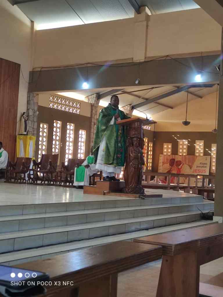 Quelques images de la cĂ©lĂ©bration sur la paroisse de Djibio ( Lokossa) avec le PĂšre Jean Claude KPATI, SD de l’Enfance Missionnaire.