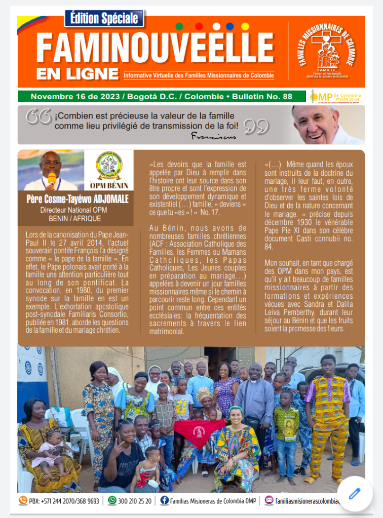 Une édition spéciale de Faminouveelle de la Colombie pour les OPM au Bénin Le 18 Nov 2023 par CELLULE DE COMMUNICATION DES OPM BENINdans Actualités, Animation missionnaire, International, Religion Téléchargez-le en bas de cette image faminoticias-beninfrances-cTélécharger Partager :Partager Cliquez pour partager sur WhatsApp(ouvre dans une nouvelle fenêtre) WhatsApp Tweet Cliquer pour imprimer(ouvre dans une nouvelle fenêtre) Imprimer Cliquez pour partager sur Reddit(ouvre dans une nouvelle fenêtre) Reddit Partager sur Tumblr Cliquez pour partager sur Telegram(ouvre dans une nouvelle fenêtre) Telegram Cliquer pour envoyer un lien par e-mail à un ami(ouvre dans une nouvelle fenêtre) E-mail J’aime chargement… Articles similaires