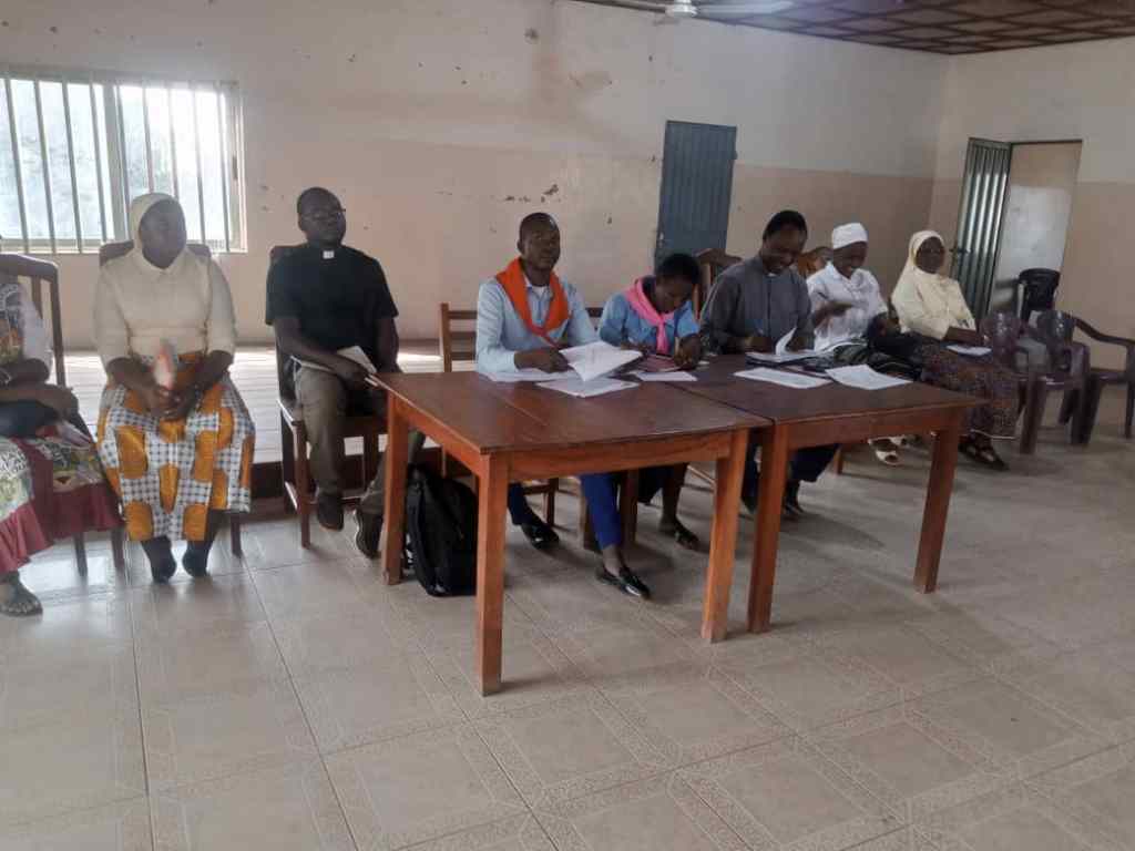 La rencontre, dirigée par le Service Diocésain Missionnaire (SDM), a rassemblé de nombreux acteurs clés de la formation spirituelle des enfants, parmi lesquels le Père Fabien SEDJAME, responsable diocésain, accompagné de Sr Agathe AHOUADA, M. Victor NABAGA, Sr Lydia SHAYO, ainsi que d’autres frères et prêtres engagés dans la mission. Ensemble, ils ont coordonné cette session d’échanges et de réflexions avec les responsables diocésains, les animateurs de l’enfance missionnaire et les conseillers sectoriels.