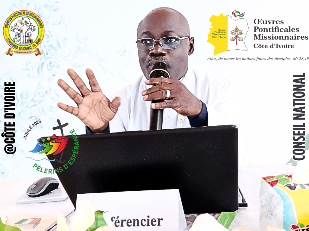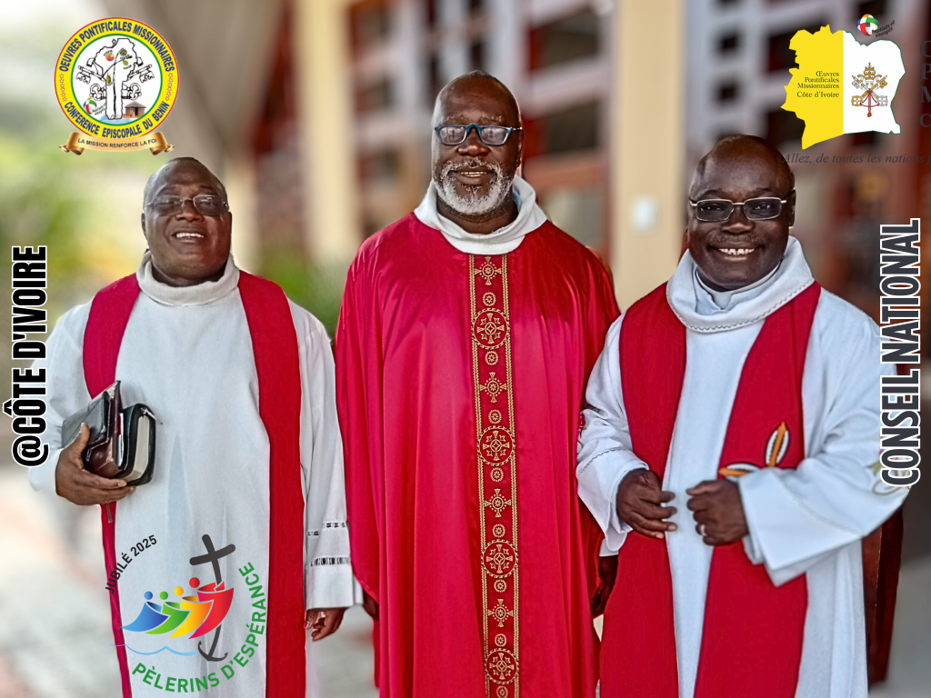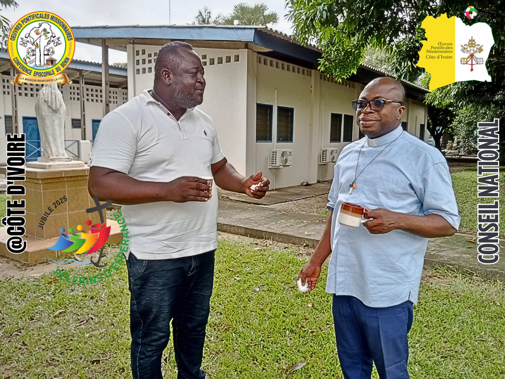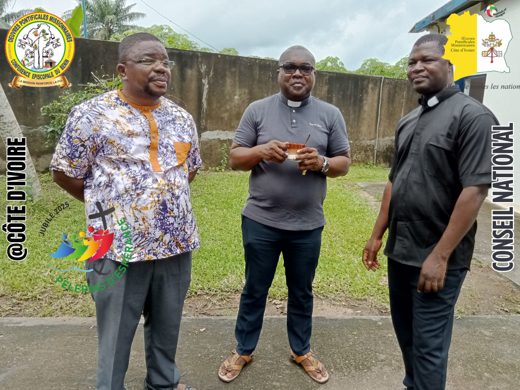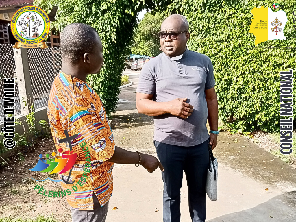 Dans le cadre de la coopération missionnaire entre Églises sœurs, le Révérend Père Jean-Noël GOSSOU, Directeur National des Œuvres Pontificales Missionnaires (OPM) de la Côte d’Ivoire, a accueilli son homologue béninois, le Révérend Père Cosme-Tayéwo ADJOMALE ainsi qu’une délégation de la Direction Nationale des OPM du Bénin pour un Conseil National des OPM en Côte d’Ivoire. La délégation béninoise comprend la Révérende Sœur Micheline-Françoise TOWANOU, assistante à la direction nationale des OPM/Bénin et secrétaire nationale de l’Enfance Missionnaire, et Monsieur Elysé GODO, chargé de communication et webmaster pour la direction nationale des OPM BÉNIN.